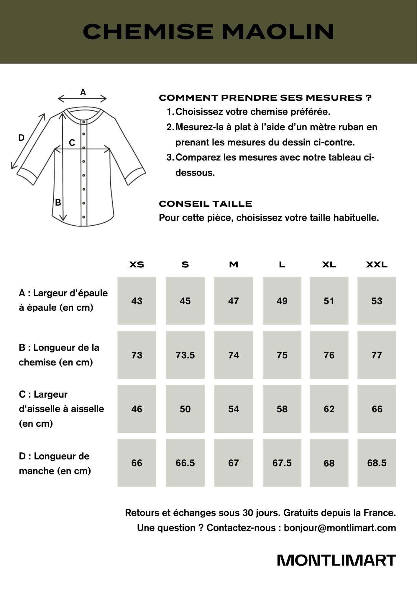 D'autres questions sur la chemise MAOLIN, écrivez-nous.