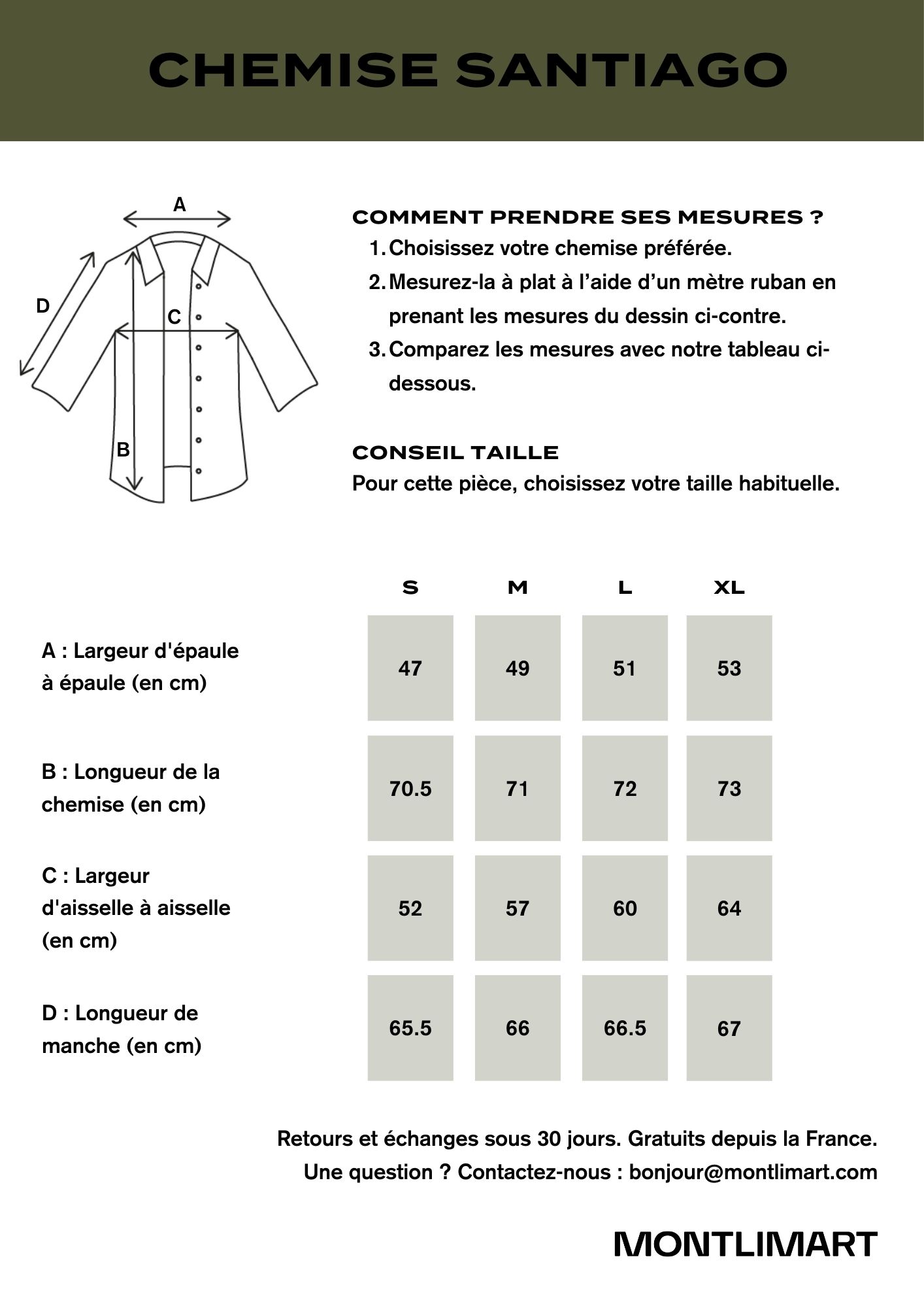 D'autres questions sur la chemise SANTIAGO, écrivez-nous.