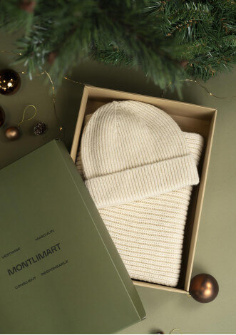 - Lot écharpe BRIT ocre et bonnet GLOBE ocre avec un coffret cadeau Montlimart