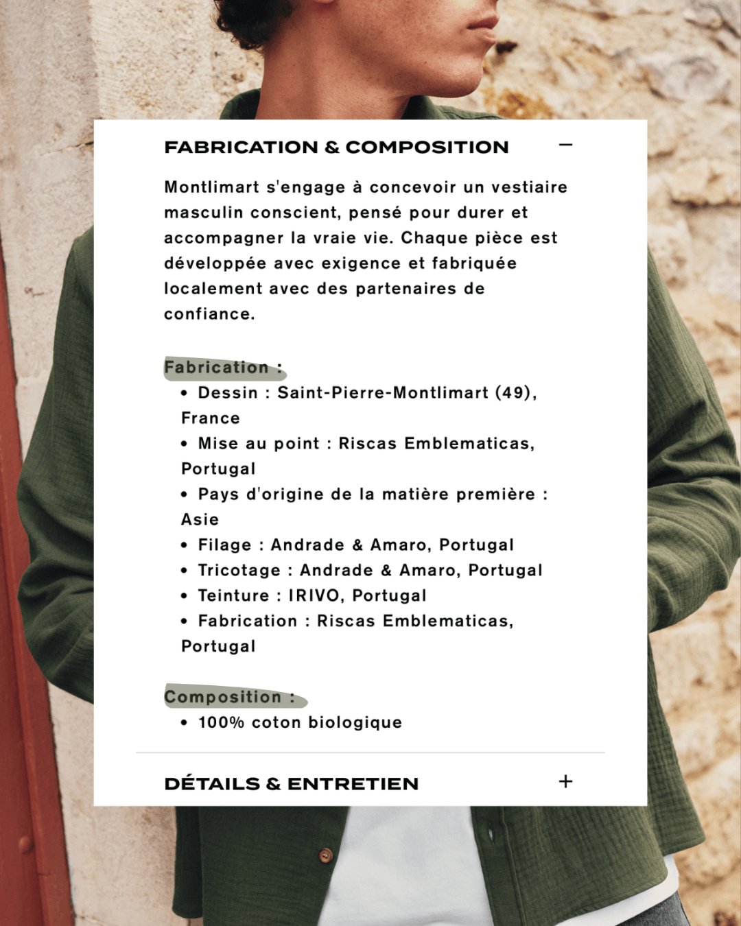 En privilégiant les circuits courts et les modes de transport moins carbonés, nous poursuivons une démarche cohérente : celle d’un vêtement qui respecte autant ceux qui le portent que ceux qui le fabriquent.