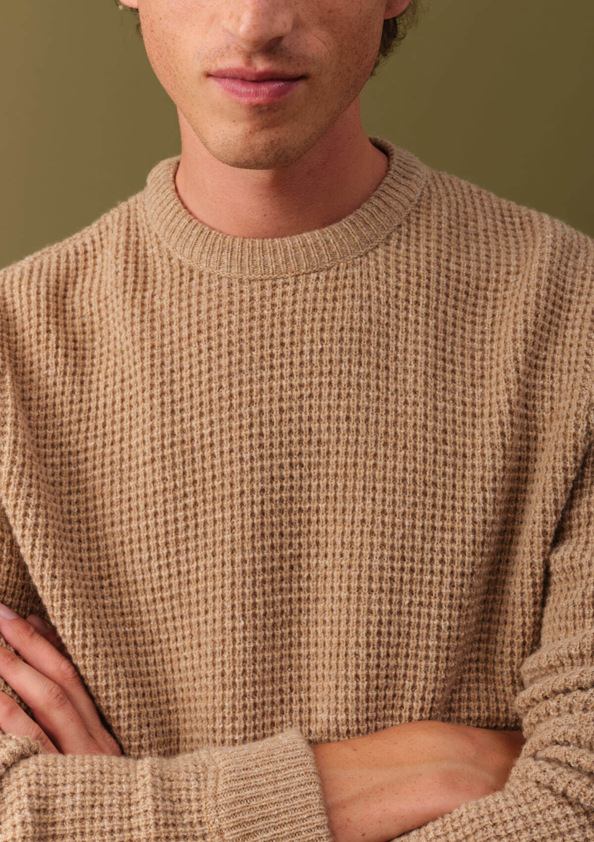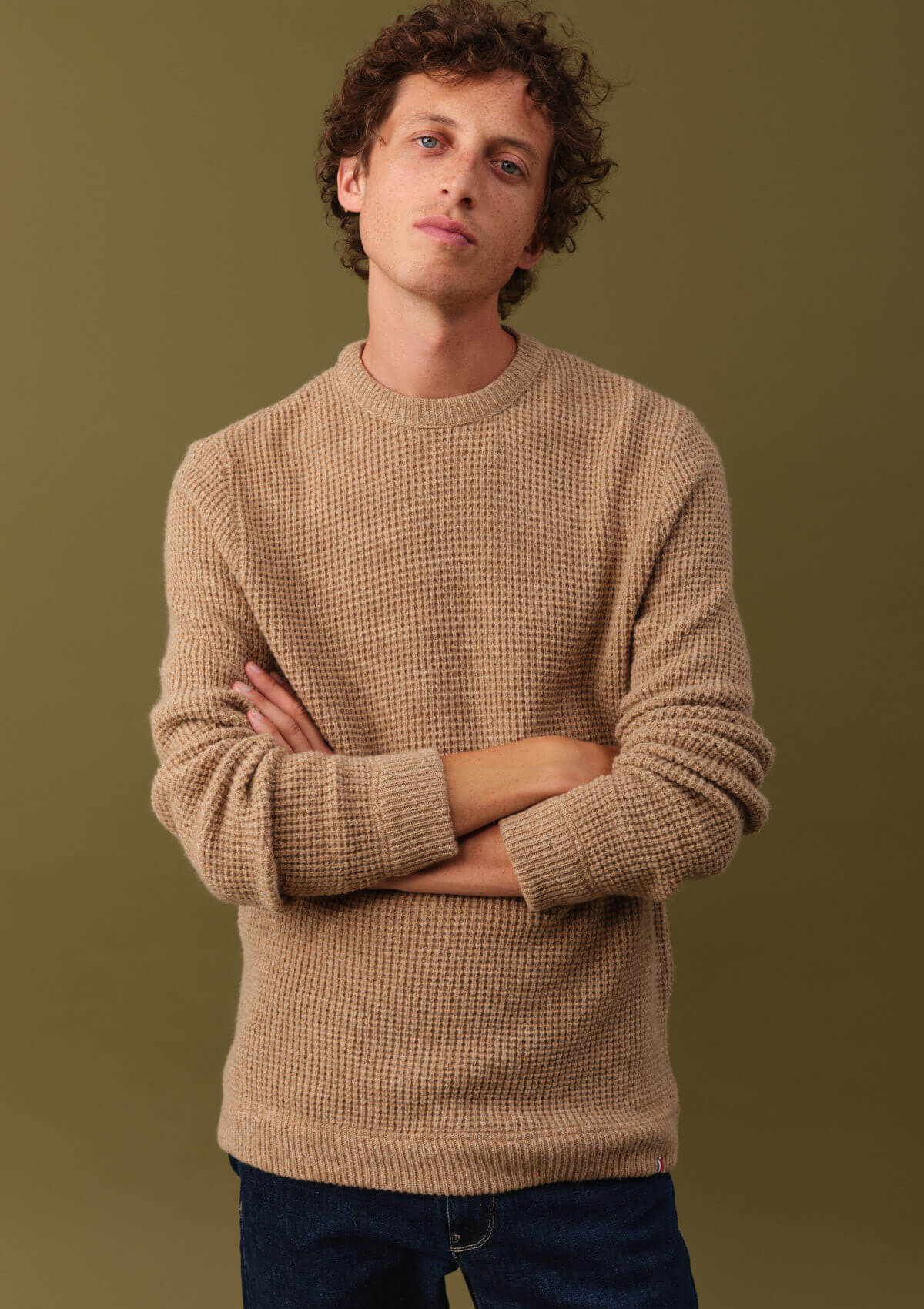 La maille du pull ORIGINE se distingue par son aspect légèrement texturé, dense mais souple. Elle évoque la solidité des vêtements bien faits, tout en restant élégante et fluide.