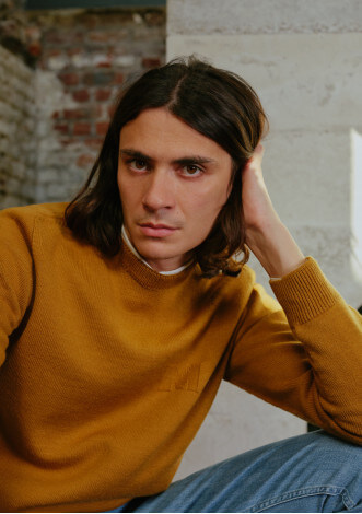 Un pull à la coupe droite, tricoté en laine mérinos française, douce et respirante. Maille jersey, motif M intégré, jauge 8. Réalisé en tricotage 3D sans coutures, pour une pièce zéro déchet, fabriquée en France.
