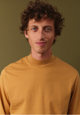 T-shirt à manches longues en jersey épais 100% coton bio. Col montant et coupe droite pour une tenue confortable. Coloris ocre profond, inspiré des teintes naturelles.